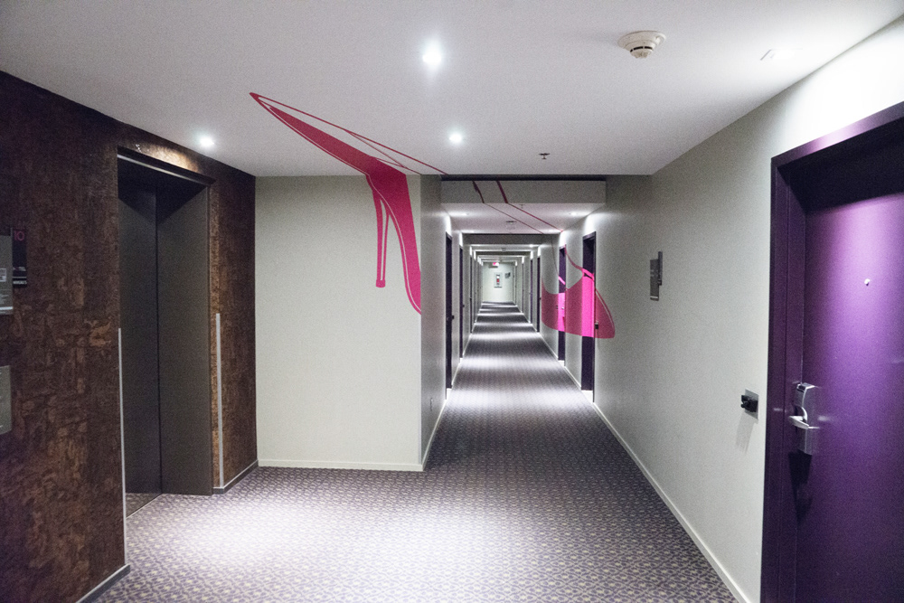 I was commissioned by LNDMRK to create anamorphic works for Hotel10 in Montreal. A mural was done on each of the hotel’s five floors in order to strengthen its commitment to art.
