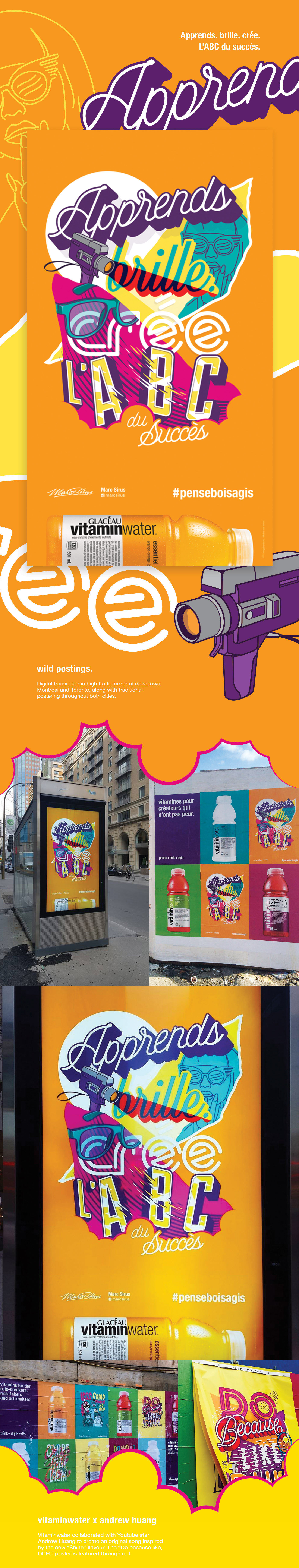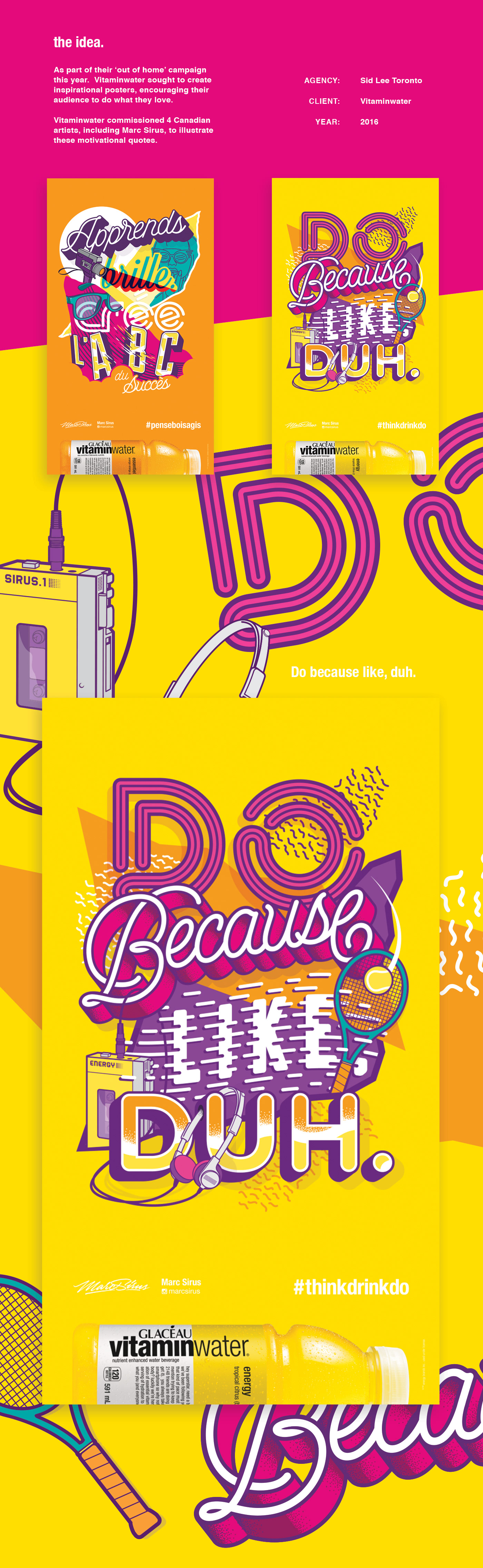 As part of their ‘out of home’ campaign this year. Vitaminwater sought to create inspirational posters, encouraging their audience to do what they love. Vitaminwater commissioned 4 Canadian artists, including Marc Sirus, to illustrate these motivational quotes.